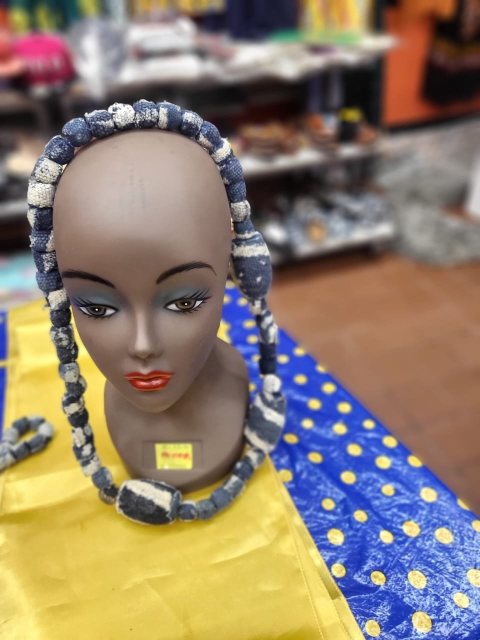 Celebrate traditional craftsmanship with this unique indigo batik statement necklace. Each cylindrical bead is meticulously wrapped in authentic, hand-dyed fabric featuring classic white patterns against a deep indigo base. The design is punctuated by large, textured focal beads that provide a sophisticated, structural silhouette. This lightweight yet bold accessory is perfect for those who appreciate the fusion of textile art and jewelry, effortlessly elevating both casual and formal ensembles with its rich heritage.