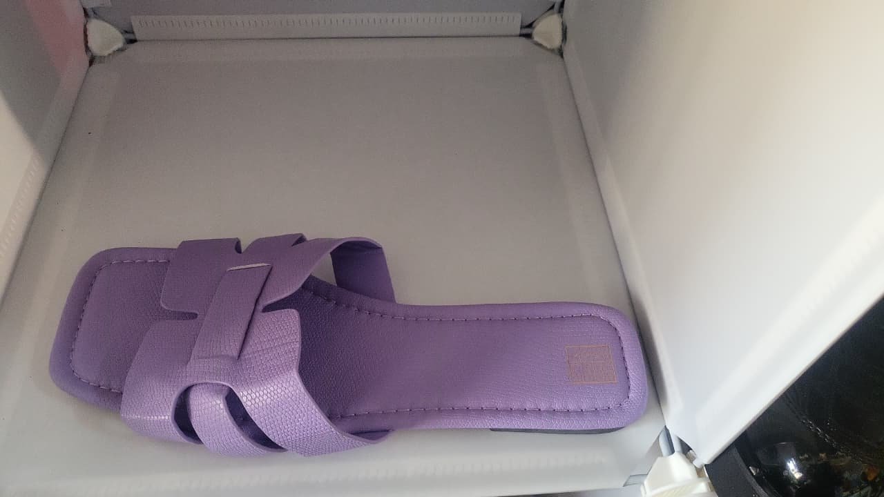 Add a soft touch of color to your casual wardrobe with these elegant lavender slides. The upper features the timeless H-strap silhouette, meticulously crafted from premium leather with a fine scale-like texture for added depth. Designed with a square-toe profile and a smooth, flat footbed, these sandals provide a sleek and modern look without sacrificing comfort. Whether you are running errands or enjoying a relaxed brunch, these versatile slides pair beautifully with denim, sundresses, or light traditional loungewear.